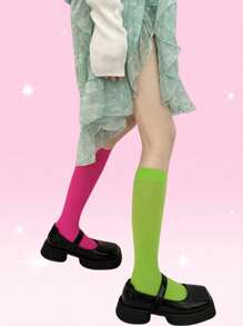 Sweetness 1pair Women Two Tone Over The Calf Socks For Summer