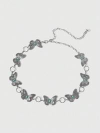 Goth 1pc Women's Silver Crystal Butterfly Decor Belt, Boho Waist Chain For Dress, Jeans, Daily Wear, Halloween Accessory