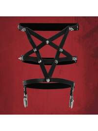 Grunge Punk 2pcs Women's Garter Belt With Red Chain, Pentagram, Hollow Cross Decor, Gothic Style Leg Garter, Versatile Accessory For Dress, Skirt