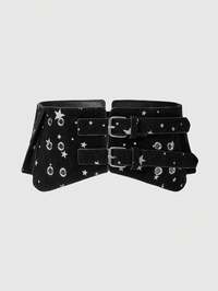 Fairycore 1pc Women Star Decor Zipper & Buckle Decor Punk Corset Belt