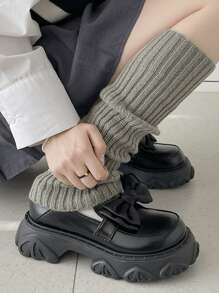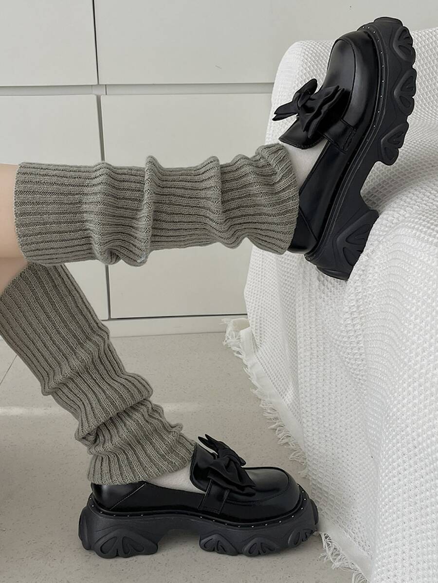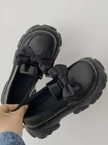 Women Bow Decor Loafers, Artificial Leather Preppy Flatform Shoes Black