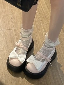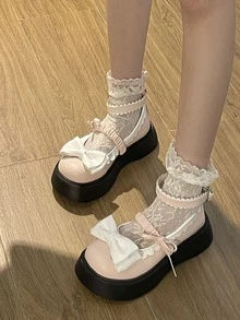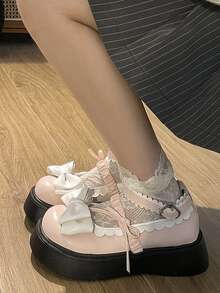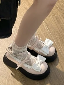 Women Bow Decor Mary Jane Shoes, Preppy Flatform Shoes