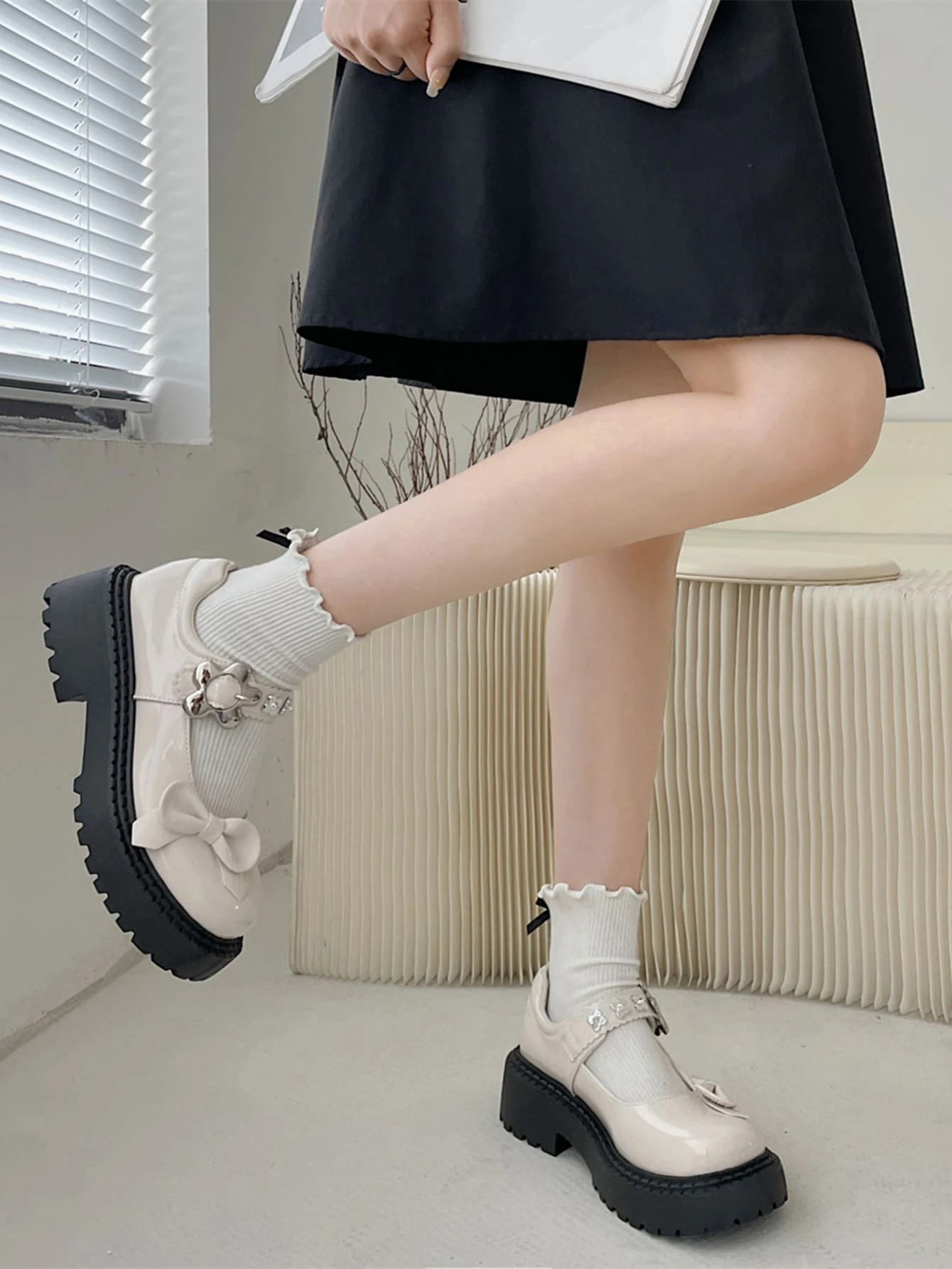 Women Bow Decor Mary Jane Shoes, Preppy Outdoor Flatform Shoes