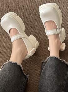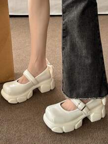 Women Bow Decor Square Toe Mary Jane Shoes, Preppy White Flatform Shoes