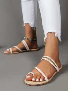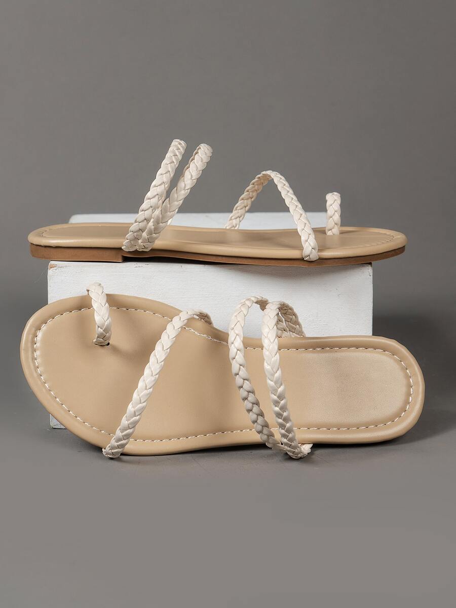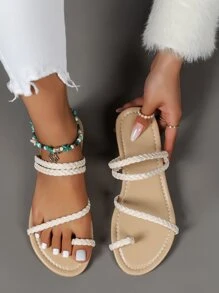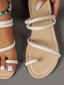 Women Braided Design Thong Sandals, Vacation Outdoor Flat Sandals