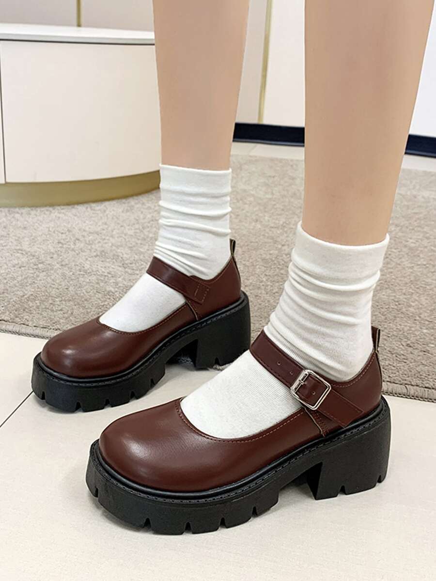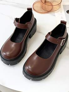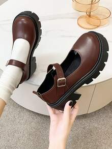 Women Buckle Decor Shoes, Preppy Brown Mary Jane Shoes