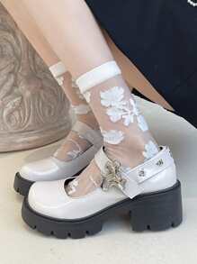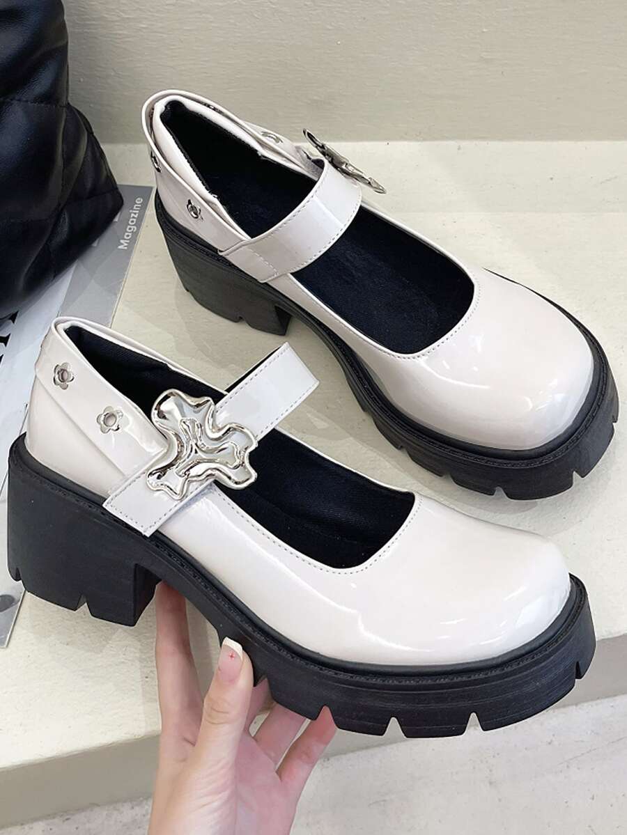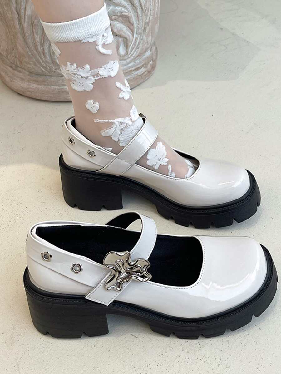 Women Buckle Decor Shoes, Preppy White Mary Jane Shoes