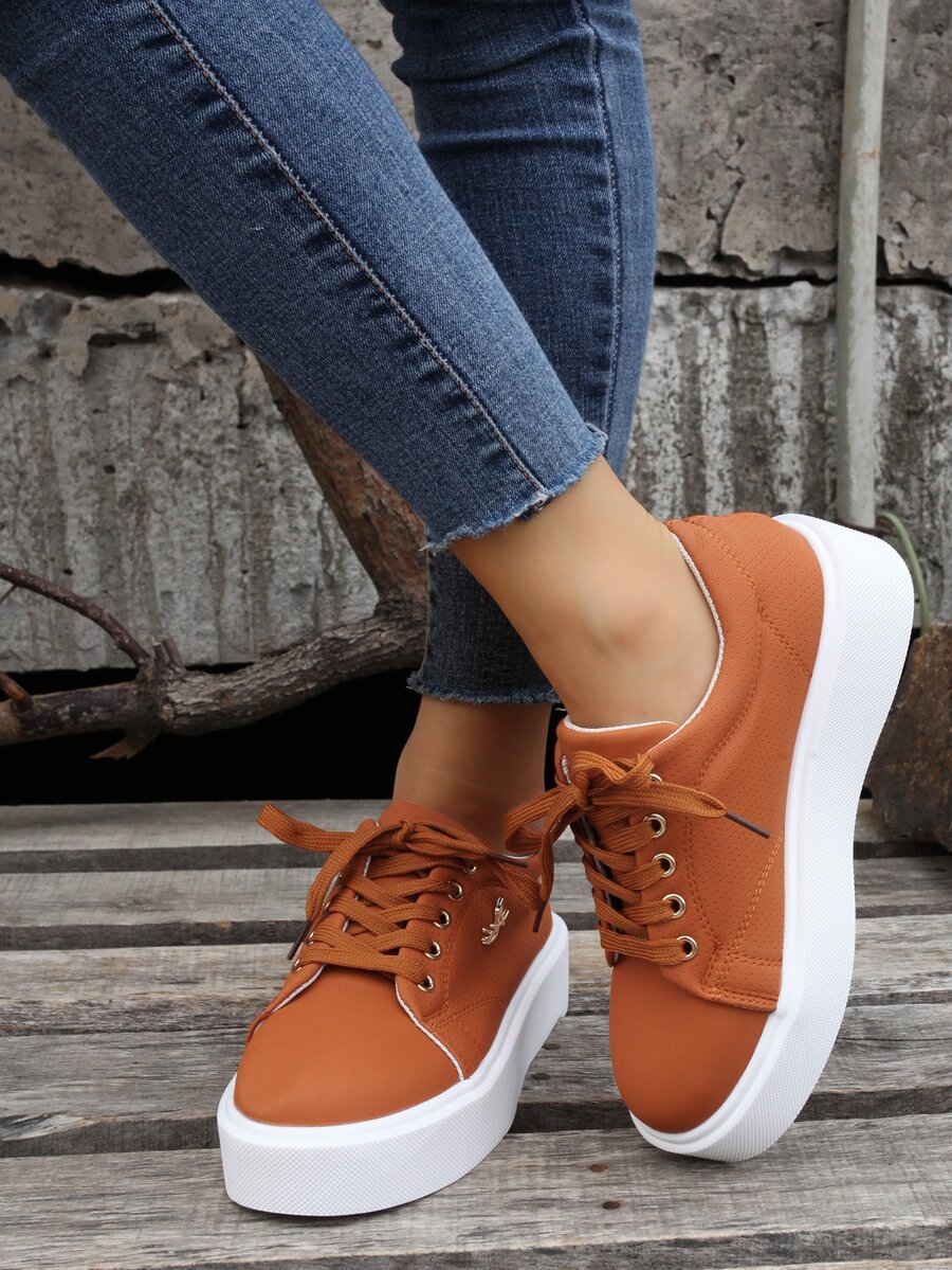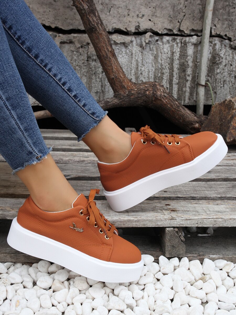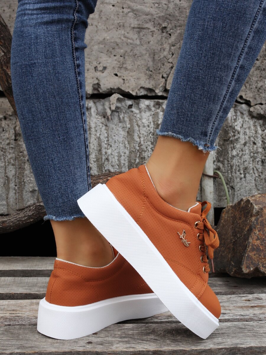 Women Minimalist Skate Shoes, Artificial Leather Lace-up Front Sporty Sneakers
