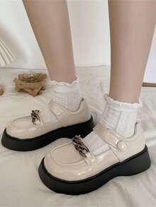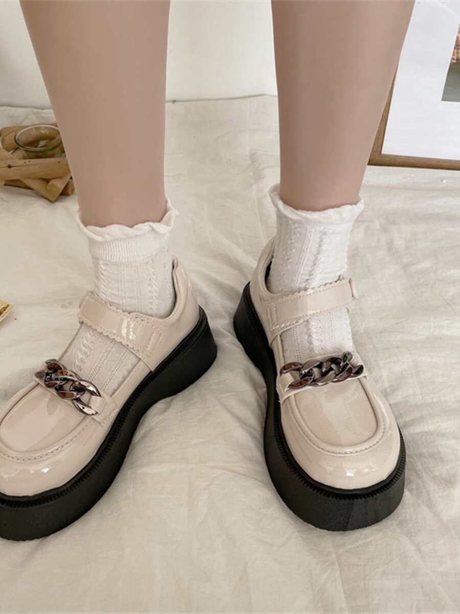 Women Chain Decor Minimalist Mary Jane Shoes, Preppy Outdoor Flatform Shoes