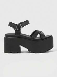 Women Dark Punk Gothic Rock Sandals With Crossed Strap, Roman Beach Sandals, Strap Buckle Dress Shoes, Platform Wedge Sandals