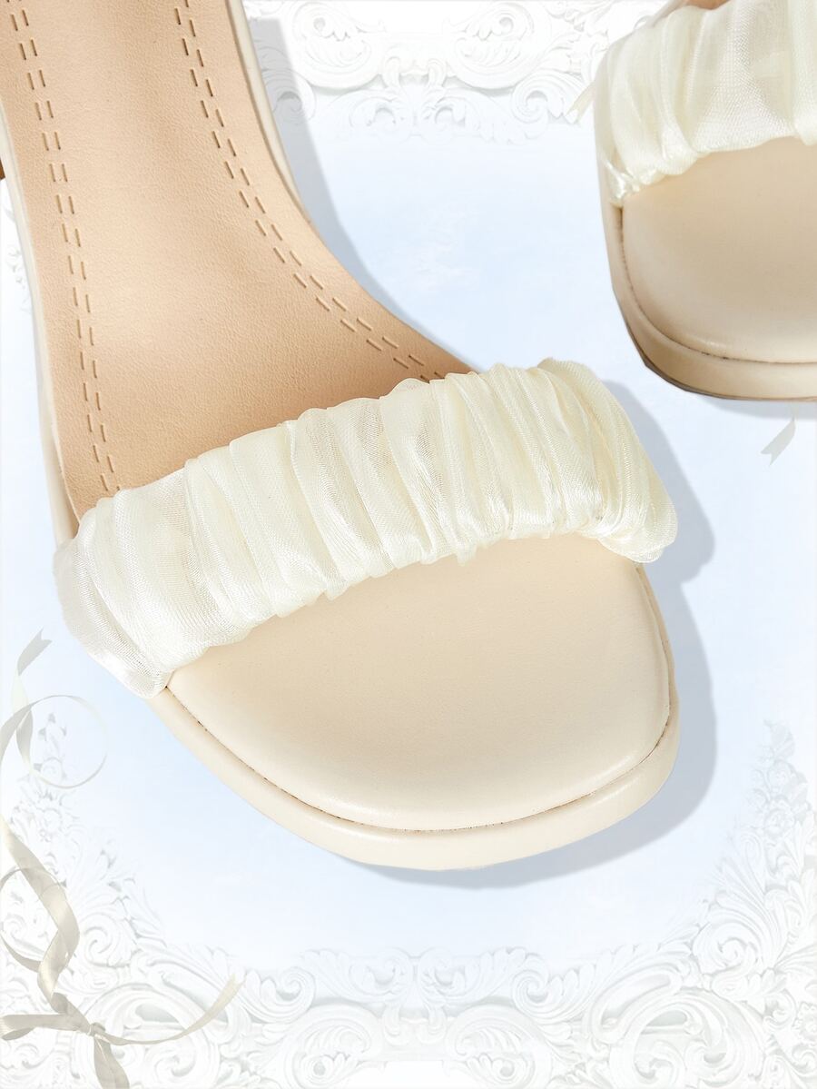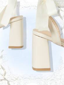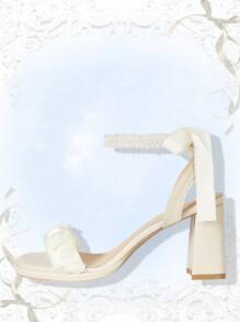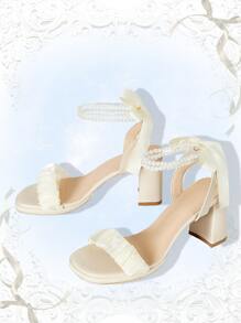 Women Faux Pearls Decor Chunky Heeled Sandals, Elegant Banquet Heeled Sandals