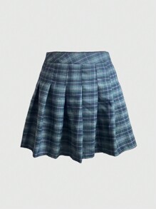 Women High Waisted Plaid Pleated School Style Skirt, Casual