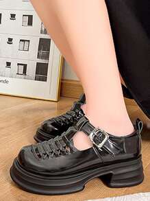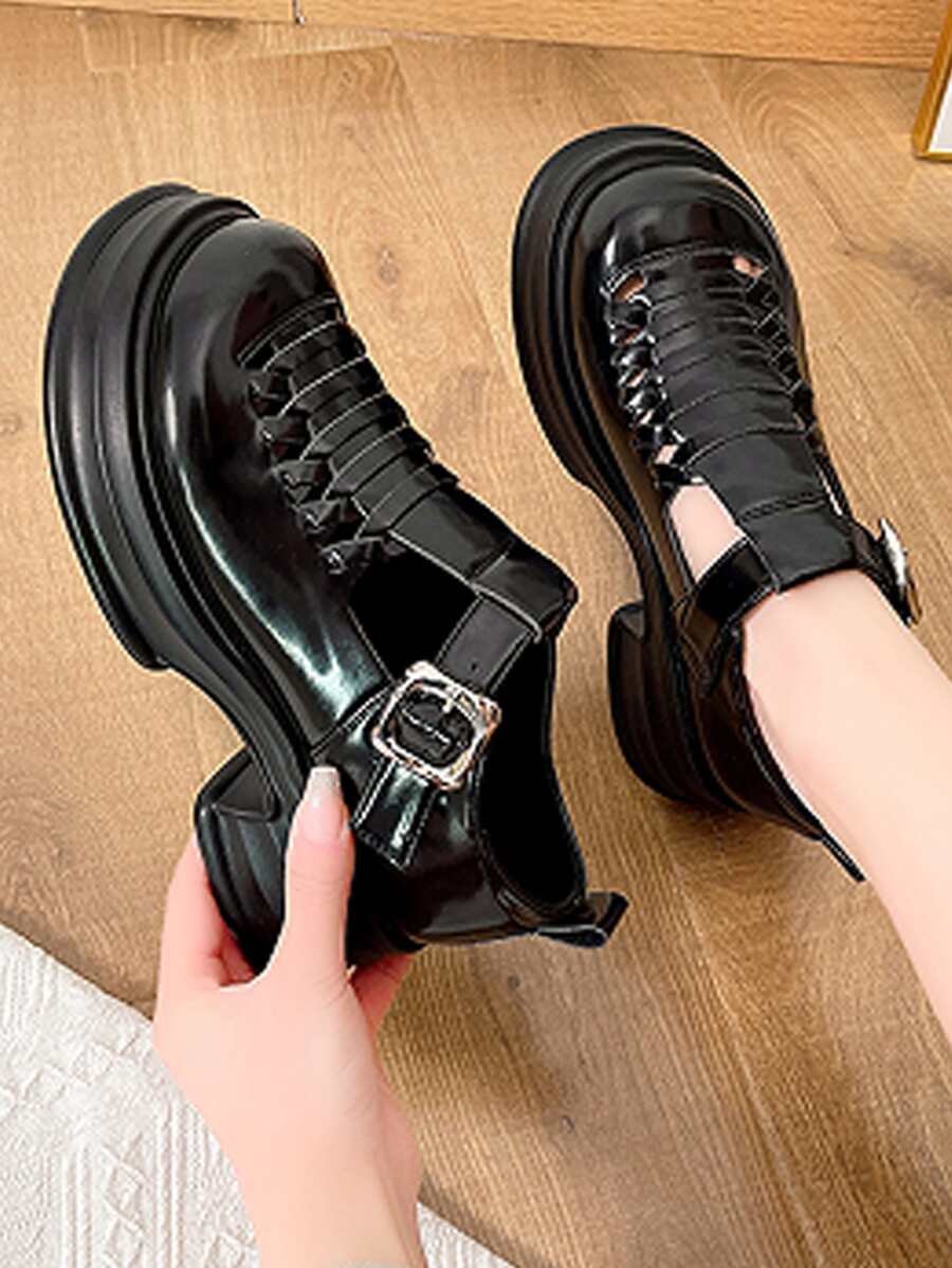 Women Hollow Out Platform Mary Jane Shoes, Elegant Black Wedge Shoes