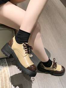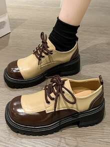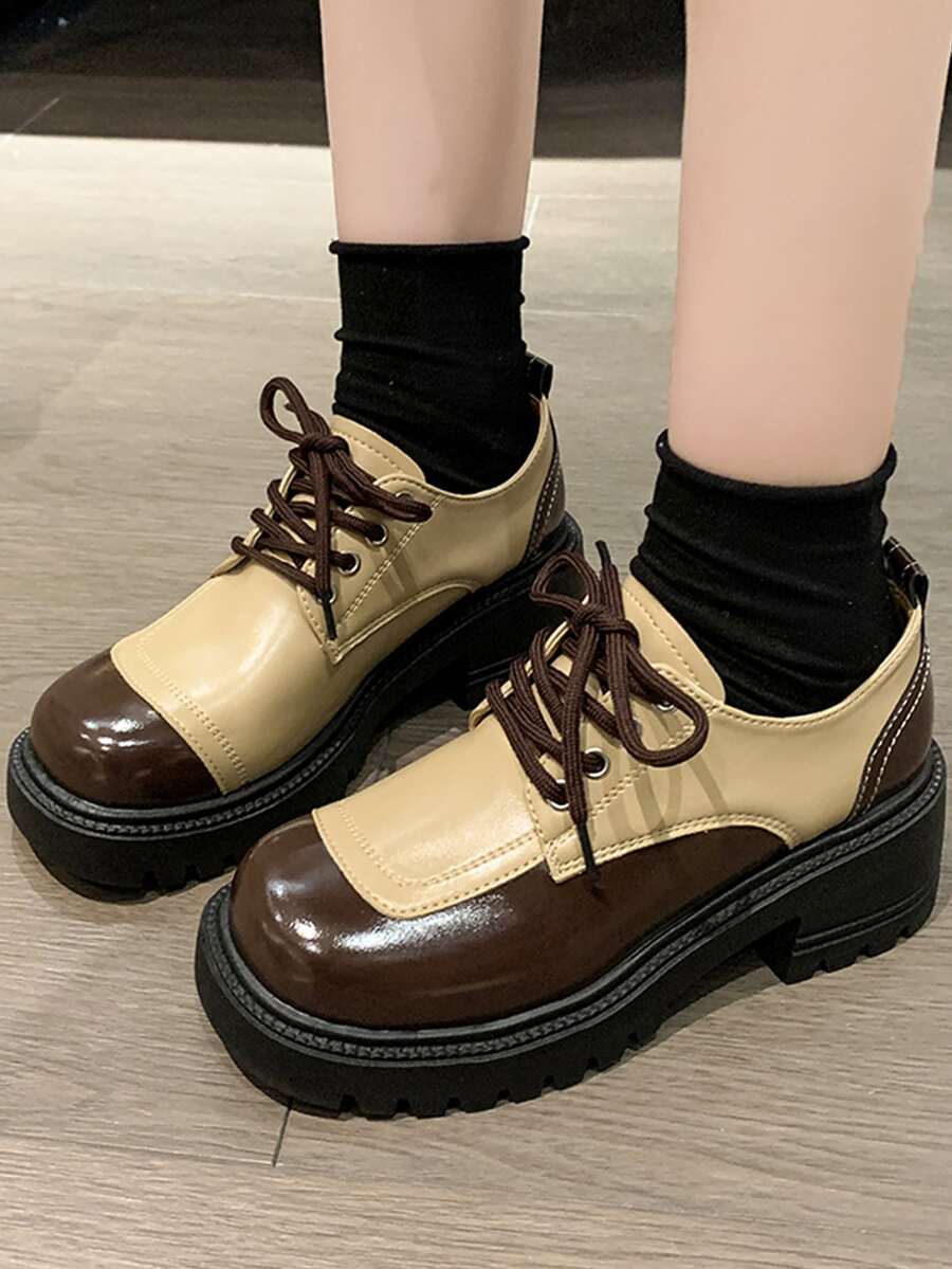 Women Lace Up Two Tone Flatform Shoes, Preppy Outdoor Flatform Oxford Shoes