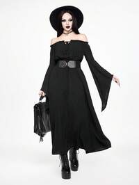 Women's Gothic Off-Shoulder Flare Sleeve Cinched Waist Dress
