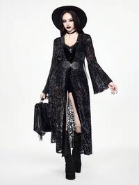 Women's Gothic Flare Sleeve High Slit Cross Hollow Out Embroidery Dress