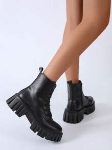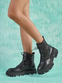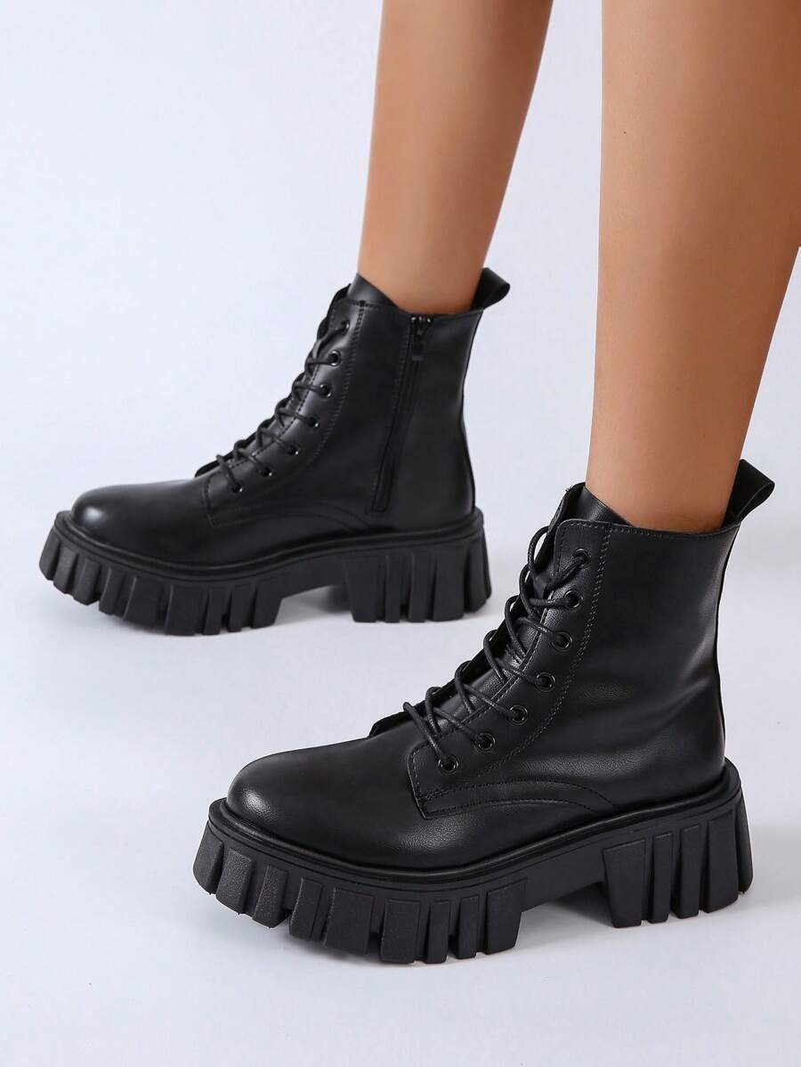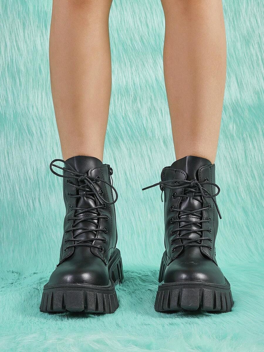 Anime Women Minimalist Lace-up Front Combat Boots, Punk Outdoor Fashion Boots