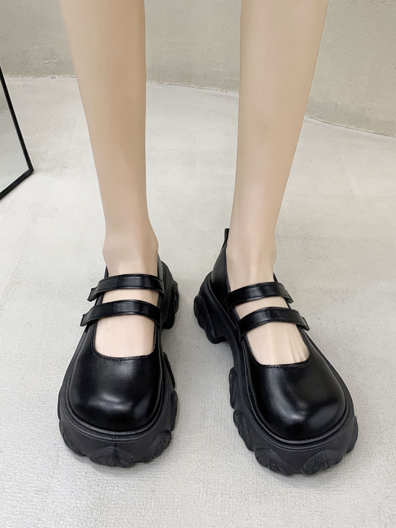 Women Minimalist Mary Jane Shoes, Preppy Black Flatform Shoes