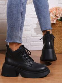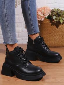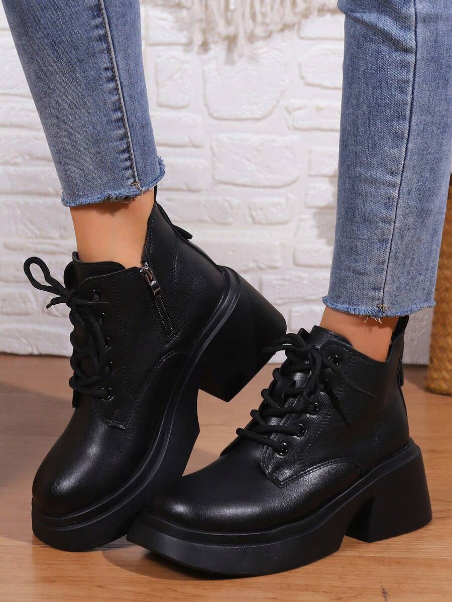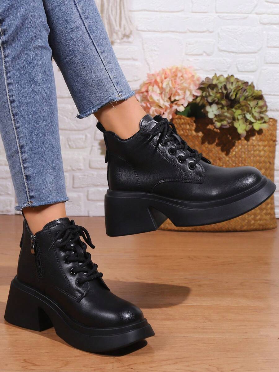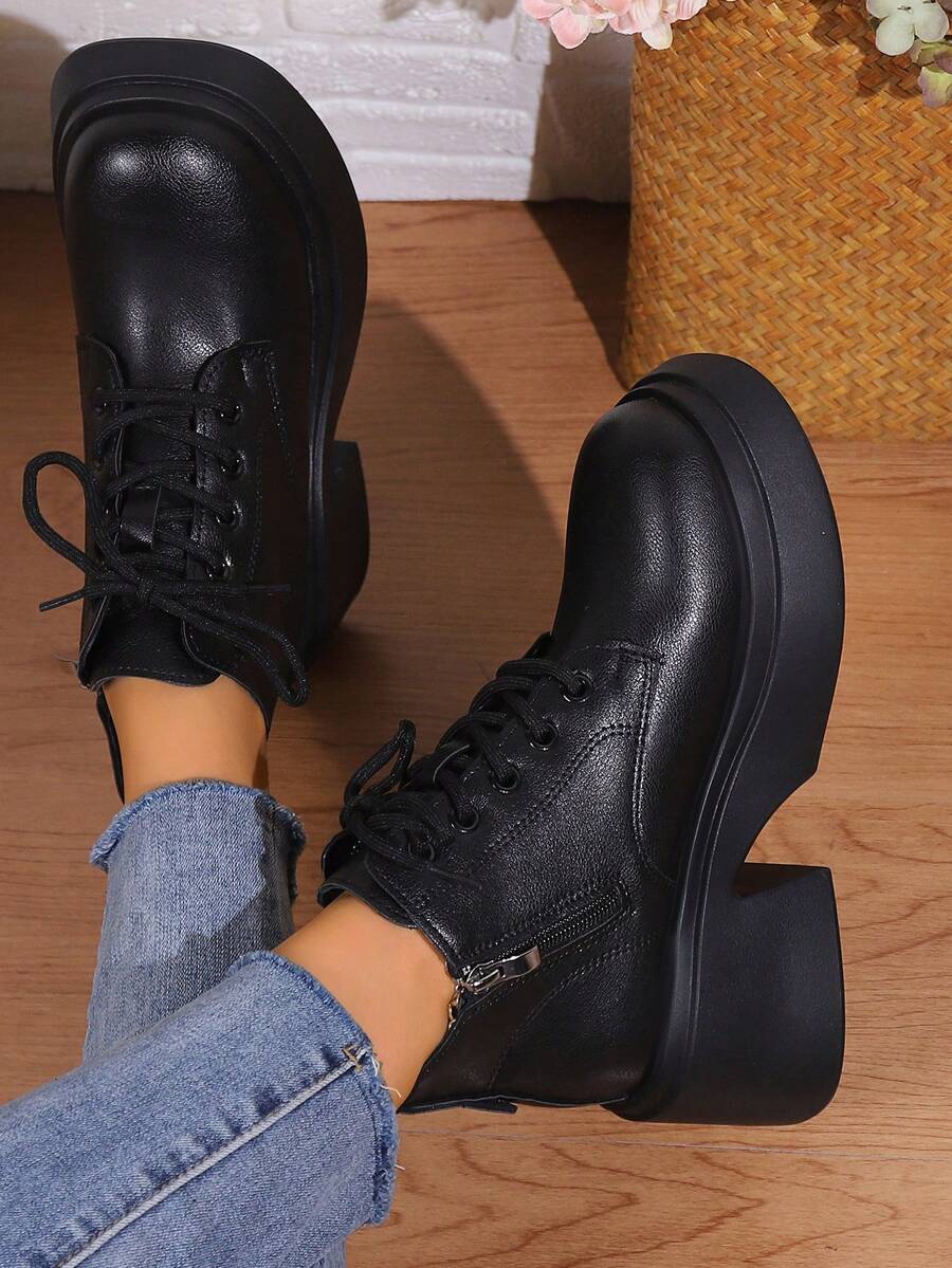 Goth Women Minimalist Side Zipper Lace-up Front Combat Boots, Cool Outdoor Fashion Boots