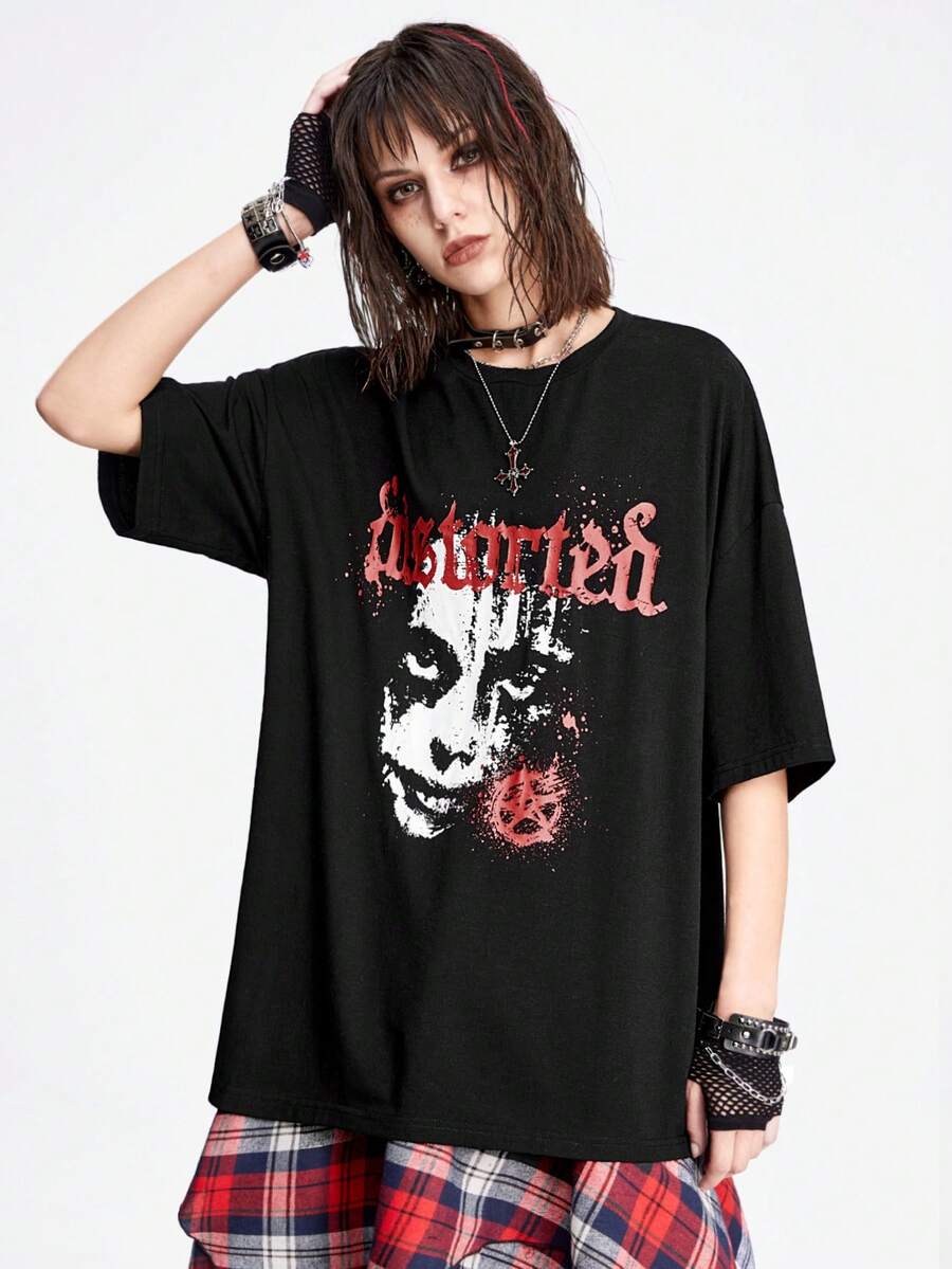 Women Portrait Printed Oversized Short Sleeve T-Shirt