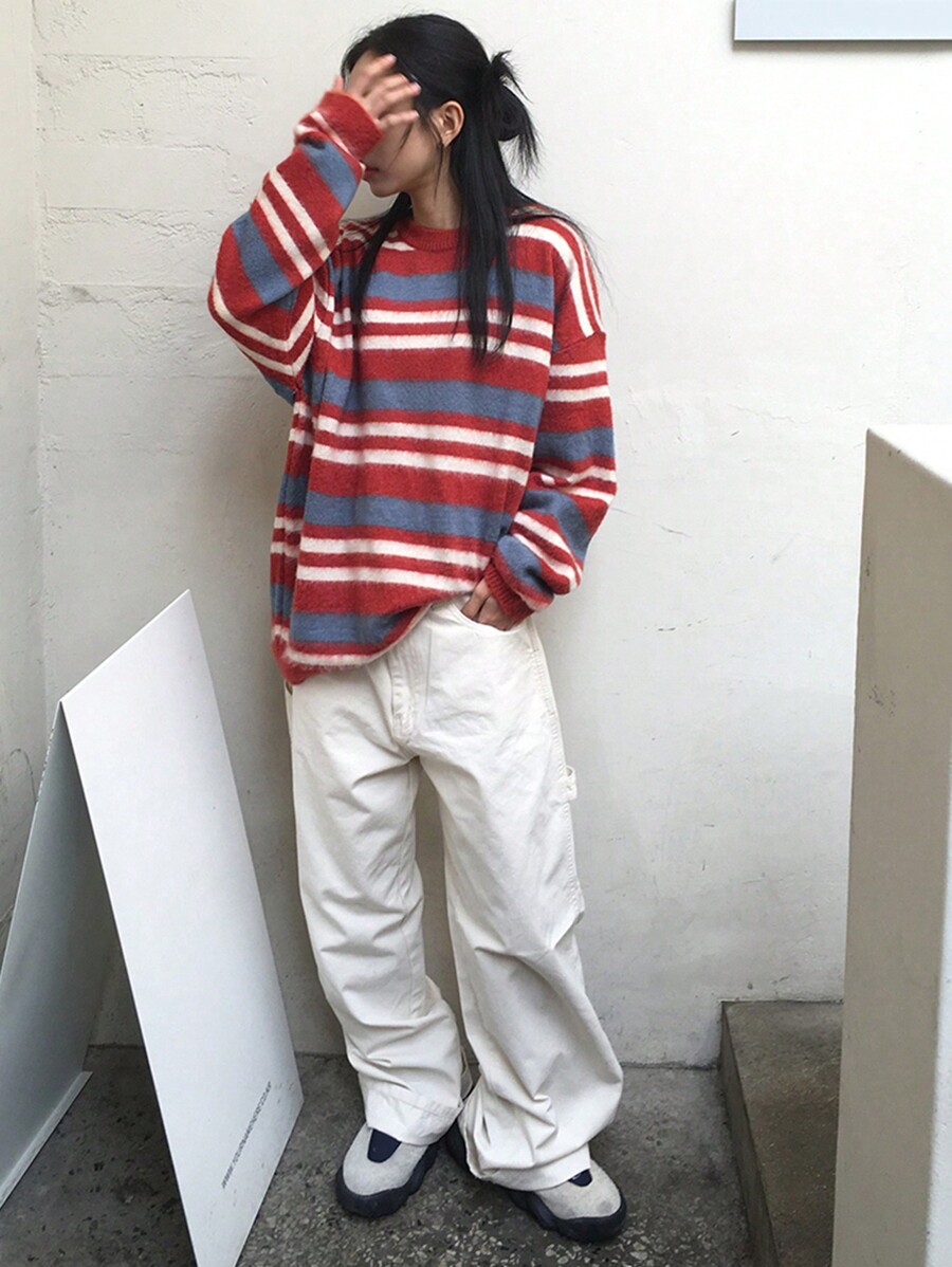 Women Rainbow Stripe Color Block Loose Knit Sweater, Christmas,Fall Women Clothes