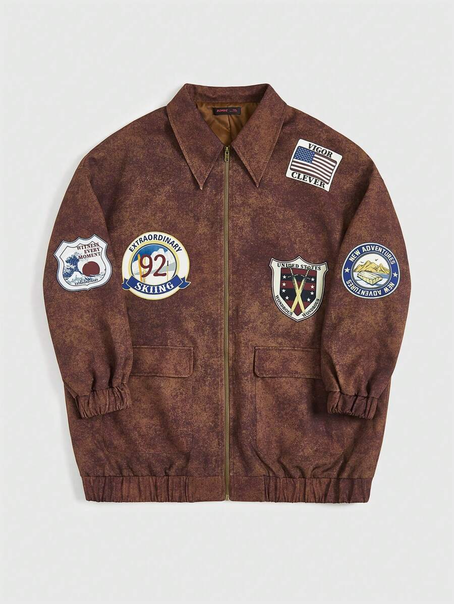 Women'S Plus Size Badge Print Zipper Front Jacket
