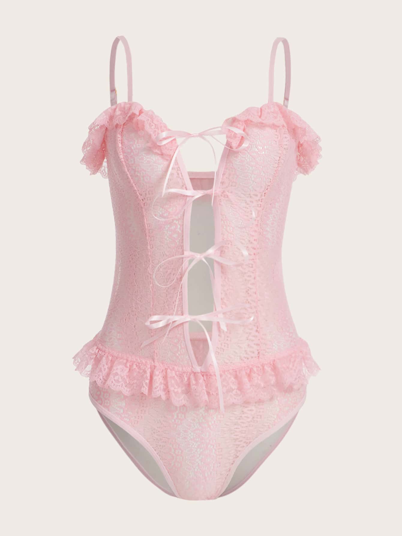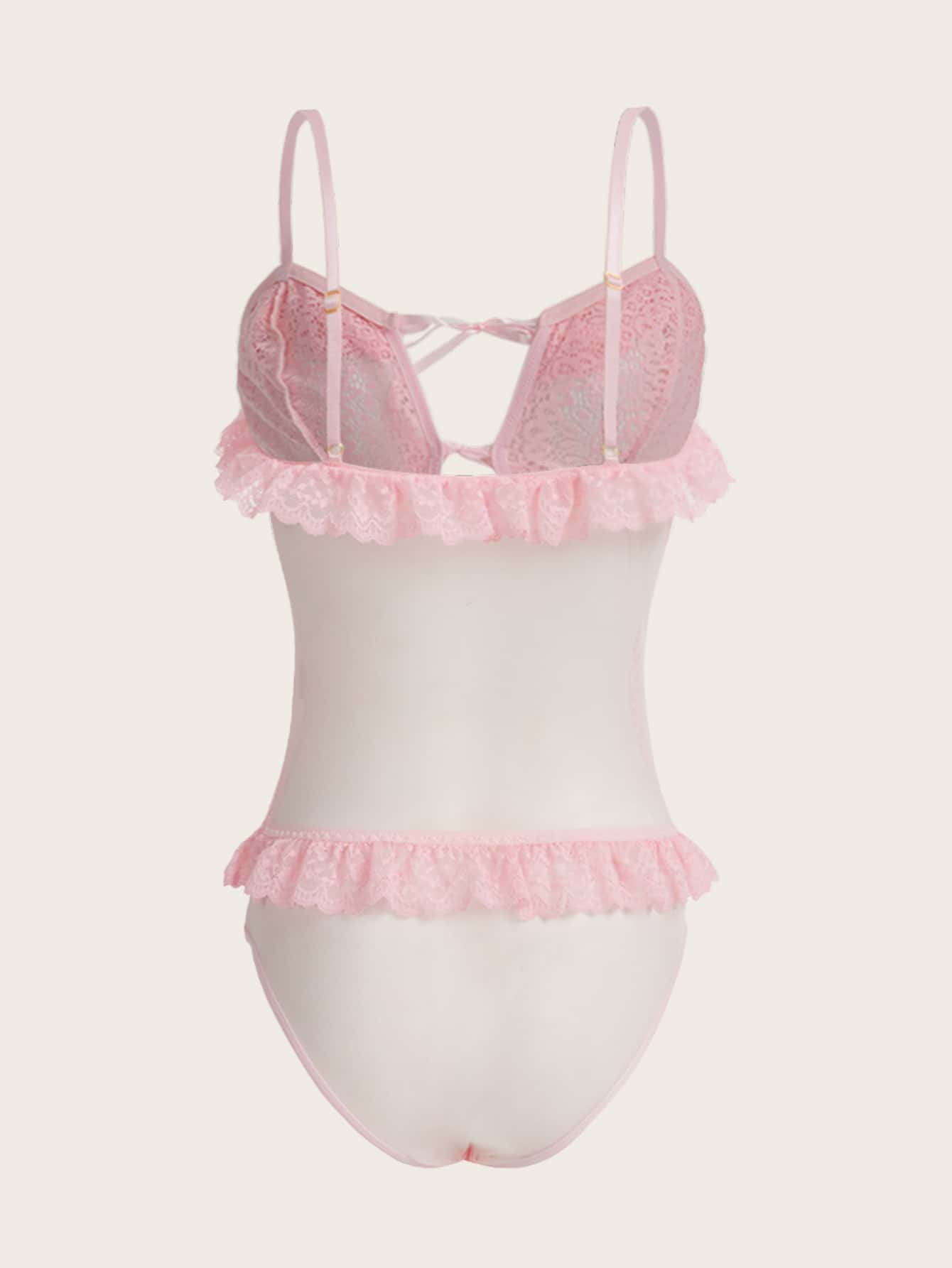 Floral Lace Ruffle Trim Teddy Bodysuit