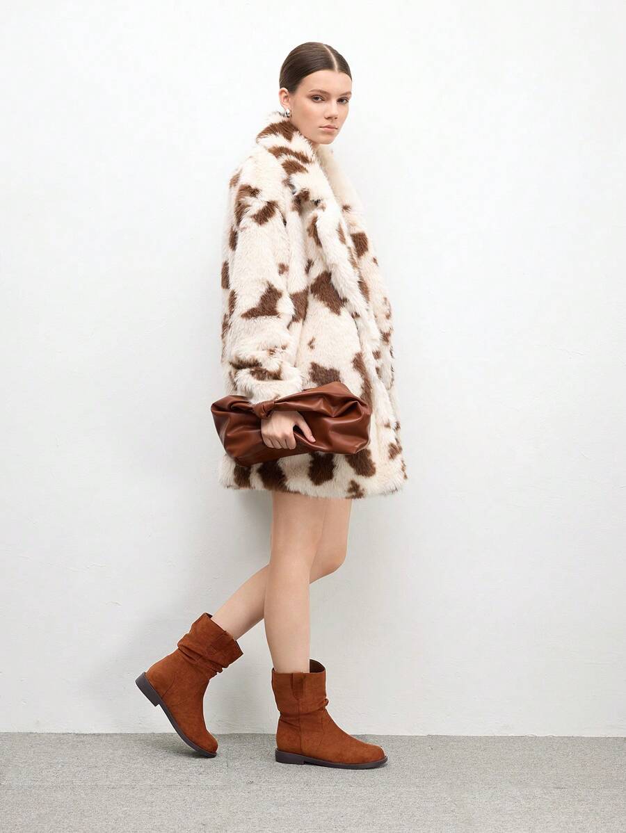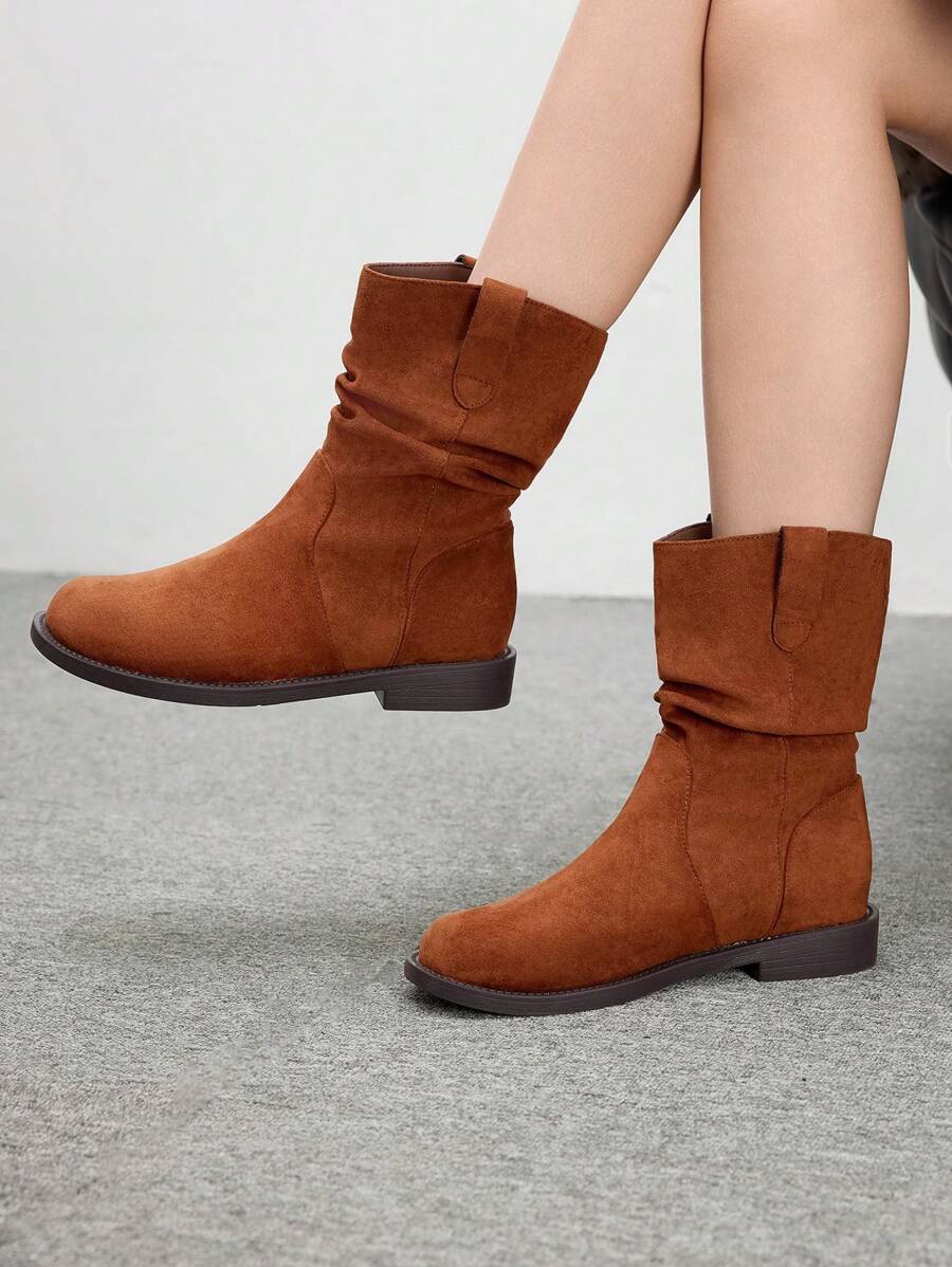 Women Short Boots, Mid-Calf Slouch Boots, Round Toe Flat Heel Valentine's Day