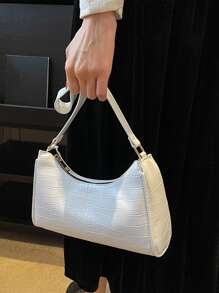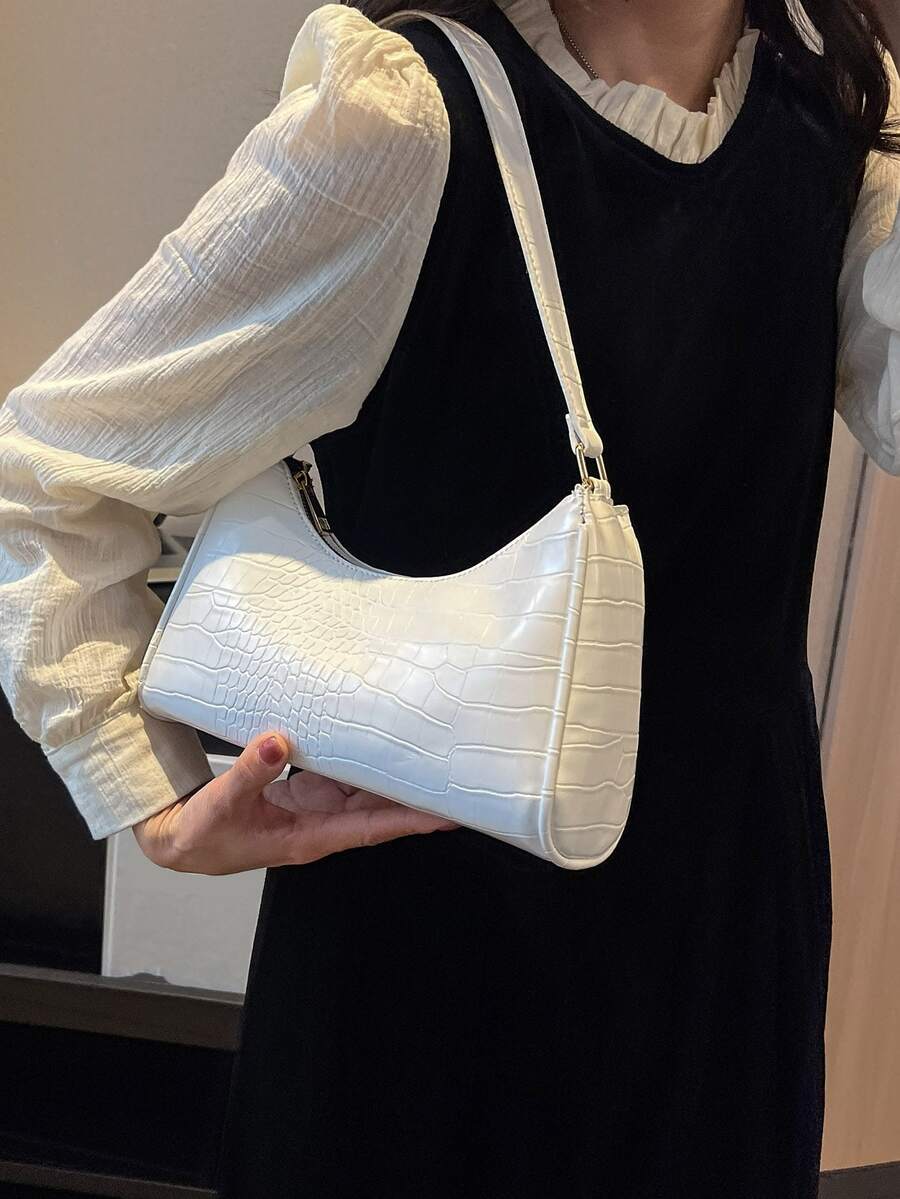 Crocodile Embossed Bag White Zipper Elegant For Daily Work