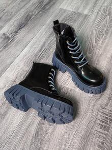 Goth Women Solid Lace Up Front Combat Boots, Cool Outdoor Fashion Boots