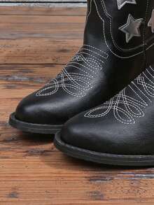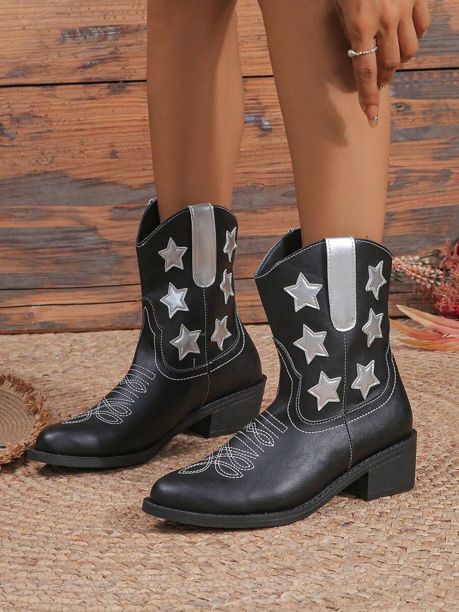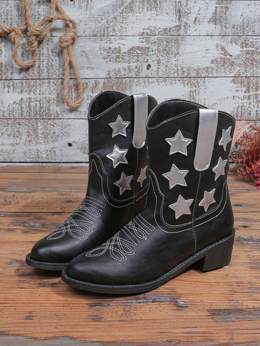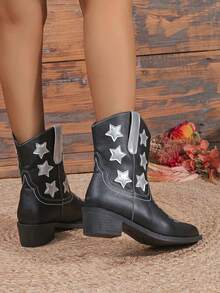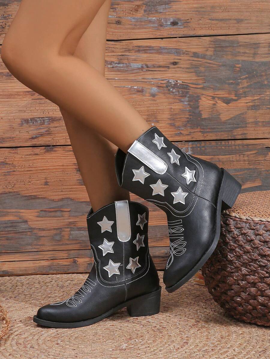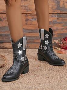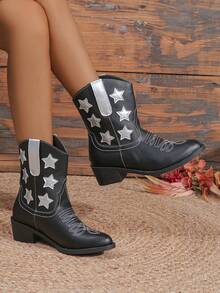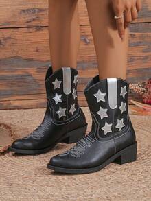 Goth Women Star Pattern Point Toe Western Boots, Cool Outdoor Fashion Boots