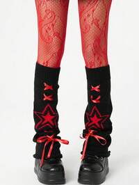 Grunge Punk 1 Pair Punk Style Tornado Pattern Red Fishnet Socks + 1 Pair Y2K Star Pattern Leg Garter, Suitable For Daily, Dance Party, Tight Fit Socks Combination