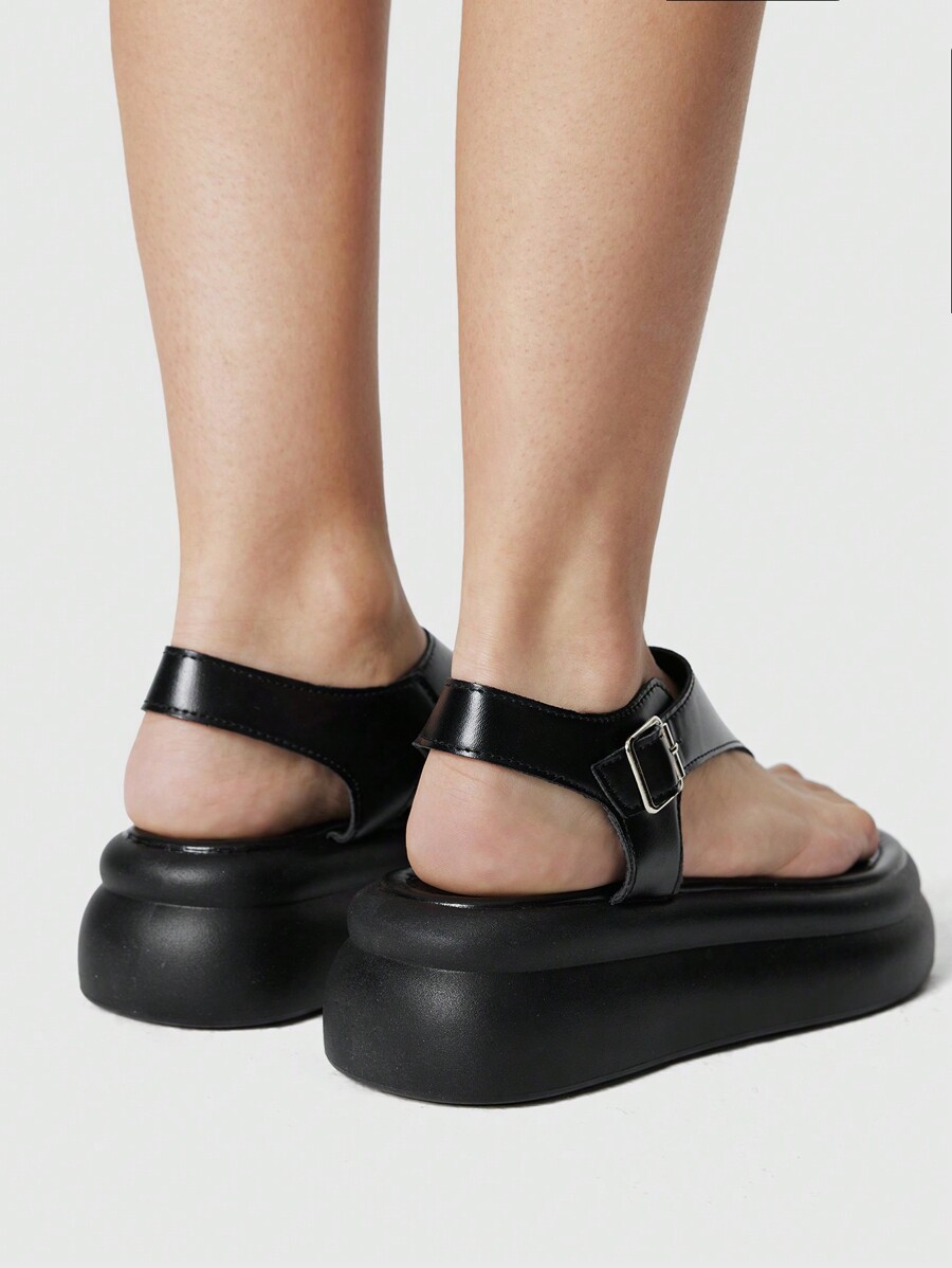 Women's Black Gothic Open Toe Strappy Flat Sandals, Roman Style Beach Vacation Wedge Platform Slip-On Shoes Spring Shoes Spring Break Easter