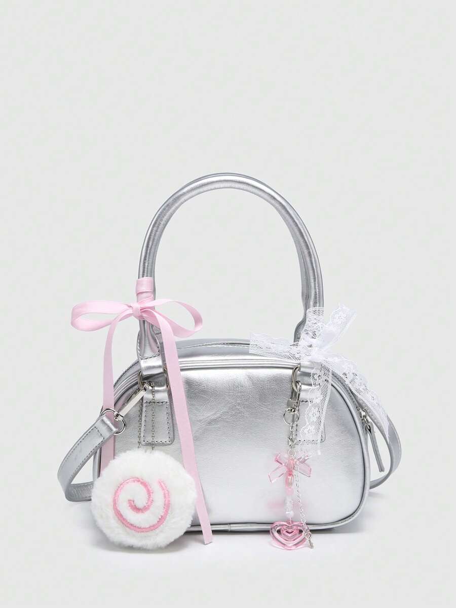 Women's Cute Ballet Style Cherry Pearls Bow Decor Mini Handbag