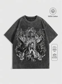 Women's Oversized Distressed Snowflake Fabric Cute Cat Print T-Shirt