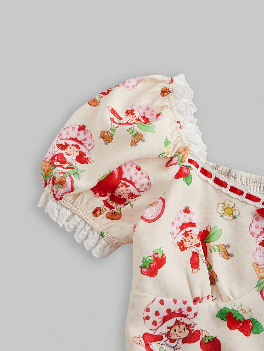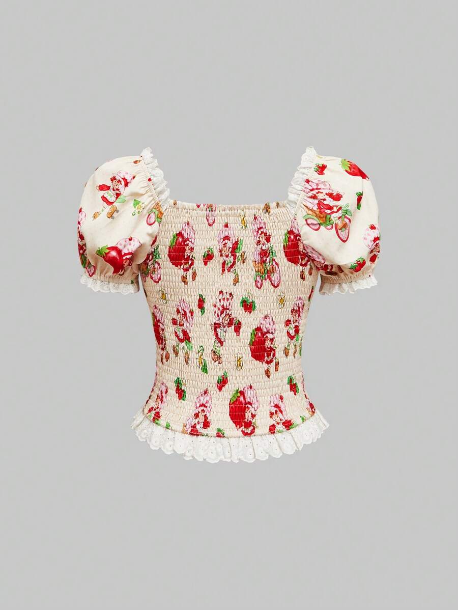 Women's Strawberry All-Over Print Cute Puff Sleeve Blouse