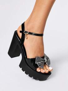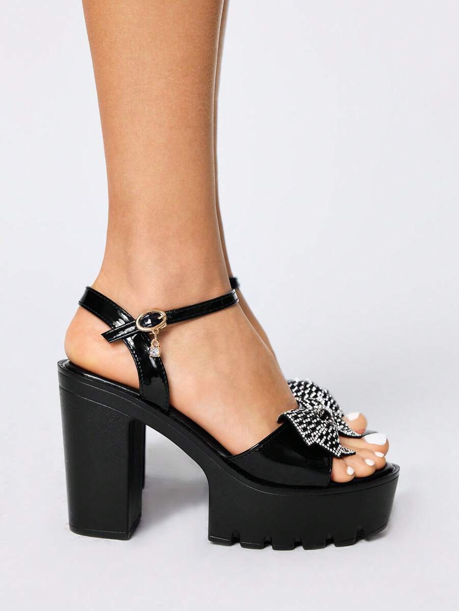 Women's Thick Heels Super High Heels 11cm Buckle Strap Fashion Sandals, New Summer Goddess Bowknot Waterproof Platform High Heels