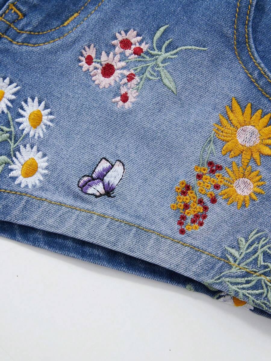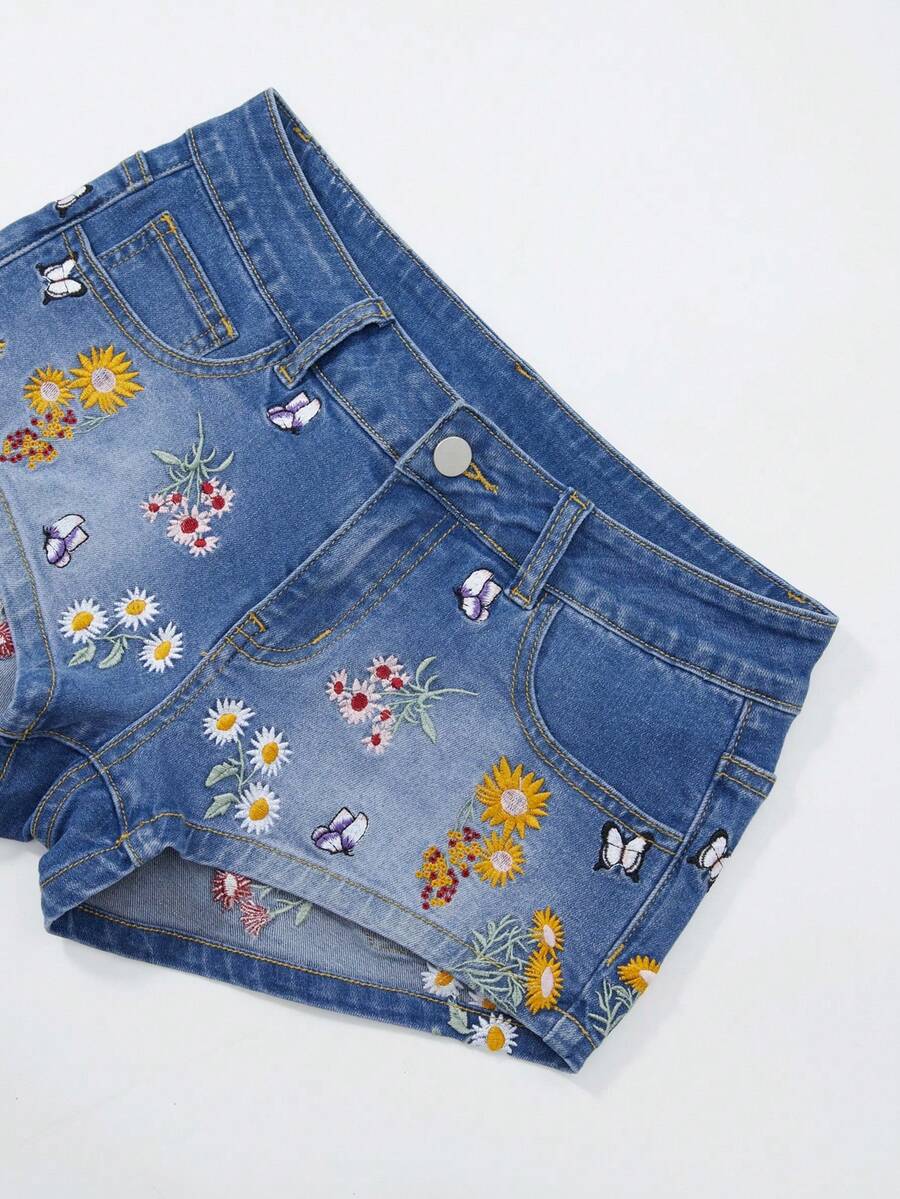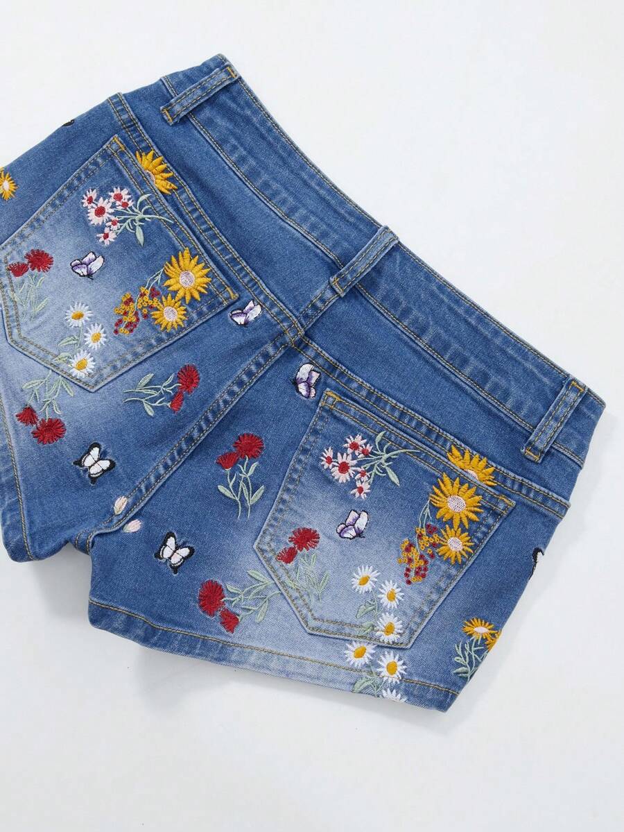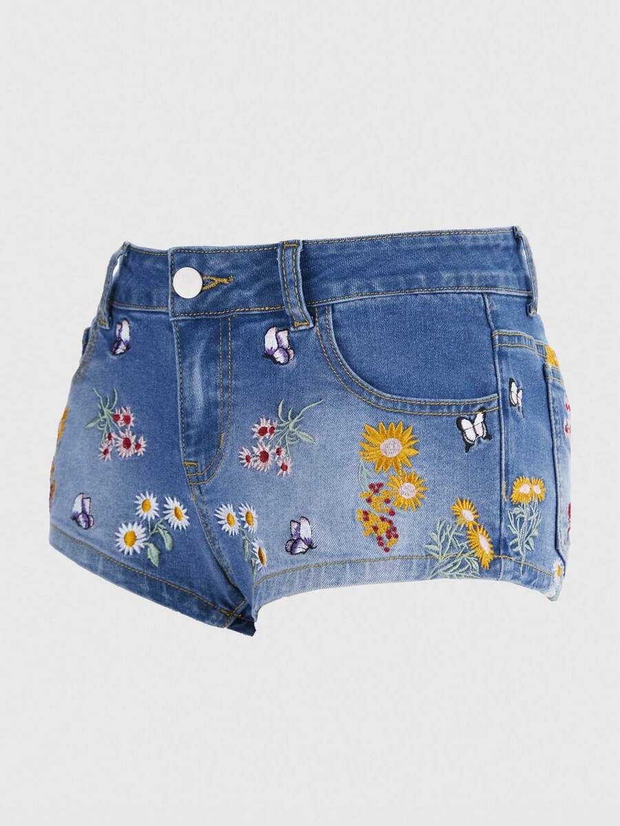 Women's Ultra Low Rise Daisy Embroidered Denim Shorts