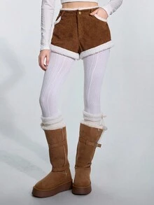ROMWE Avant Y2K Autumn/Winter Fuzzy Low-Waist Pants, Ins-Style Sexy Slim Fit Contrast Color Fluffy Casual Shorts