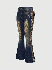 J-Fashion Y2K Gyaru Harajuku Low Waist Leopard Print Vintage Skinny Super Low Rise Jeans For Women