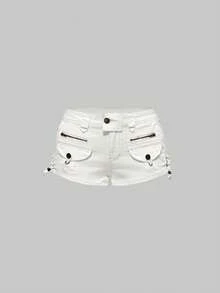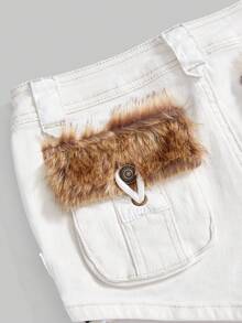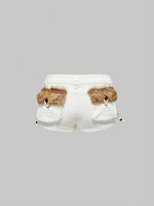 Grunge Punk Y2K Harajuku Gyaru Gal Style Patchwork Fuzzy Super Low-Rise Mini Super Low Waist Denim Shorts