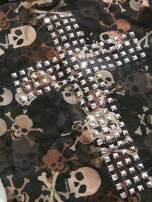 J-Fashion Y2K Punk Cross Rivet Design Laser Cut Camo Print Fitted T-Shirt