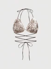 Fairycore Y2K Sexy Deer Spot Print Fluffy Bikini Top For Women