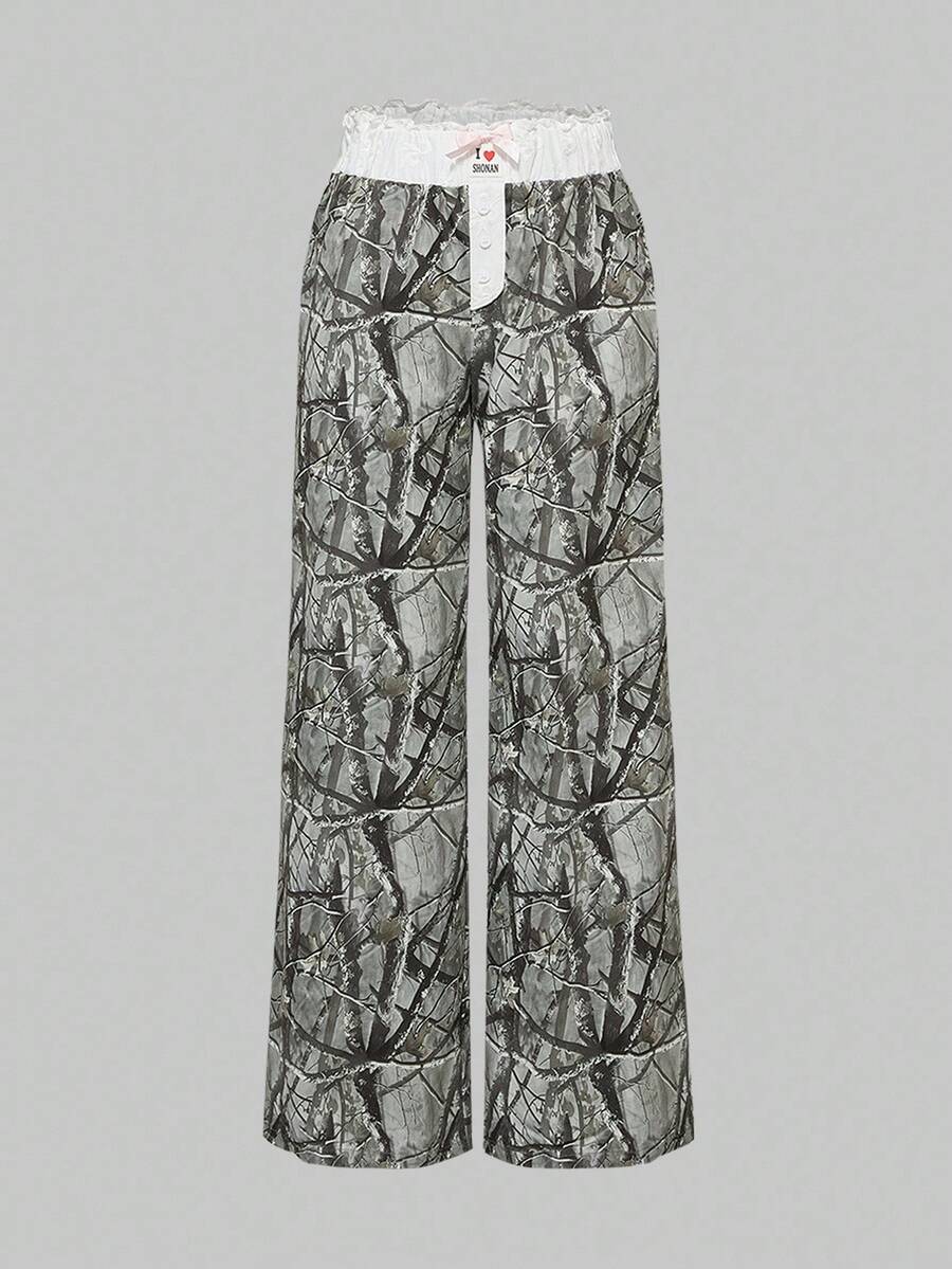 Y2K Style Camouflage Print Embroidered Bowknot Contrast Color Casual Pants For Women