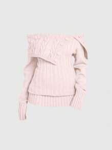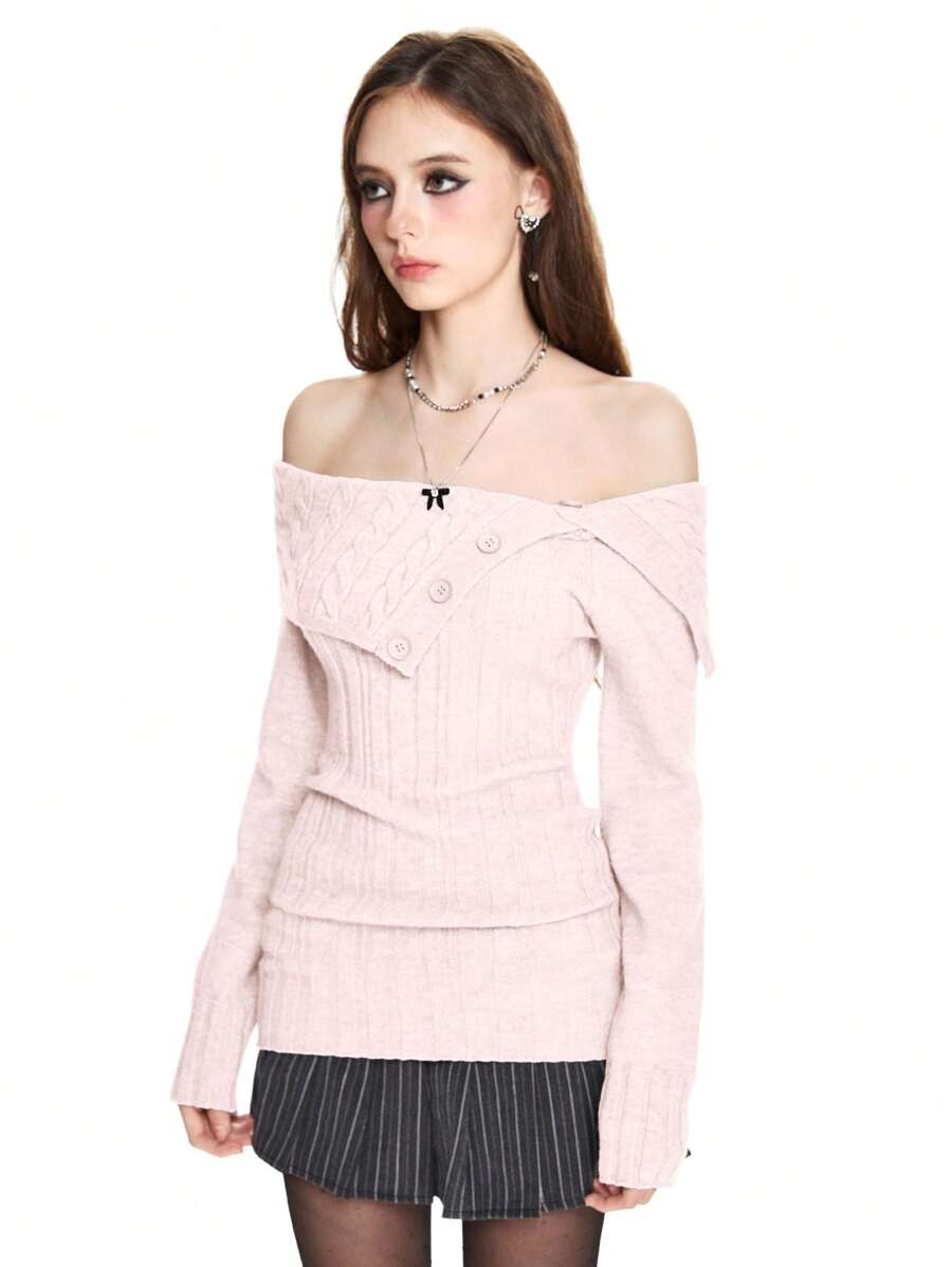 Y2K Style Women's Off Shoulder Ribbed Knit Sweater With Waist Cinching