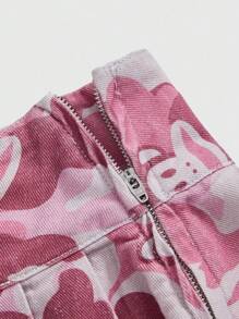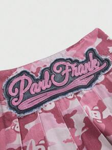 Paul Frank X ROMWE Y2K Subculture Camo Print & Cartoon Patch Decor Low Waist Women Denim Mini Skirt