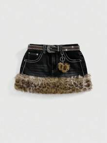 Kawaii Y2K Vintage Leopard Print Frayed Hem Plus Size Women Mini Low Waist Skirt With Belt Accessory
