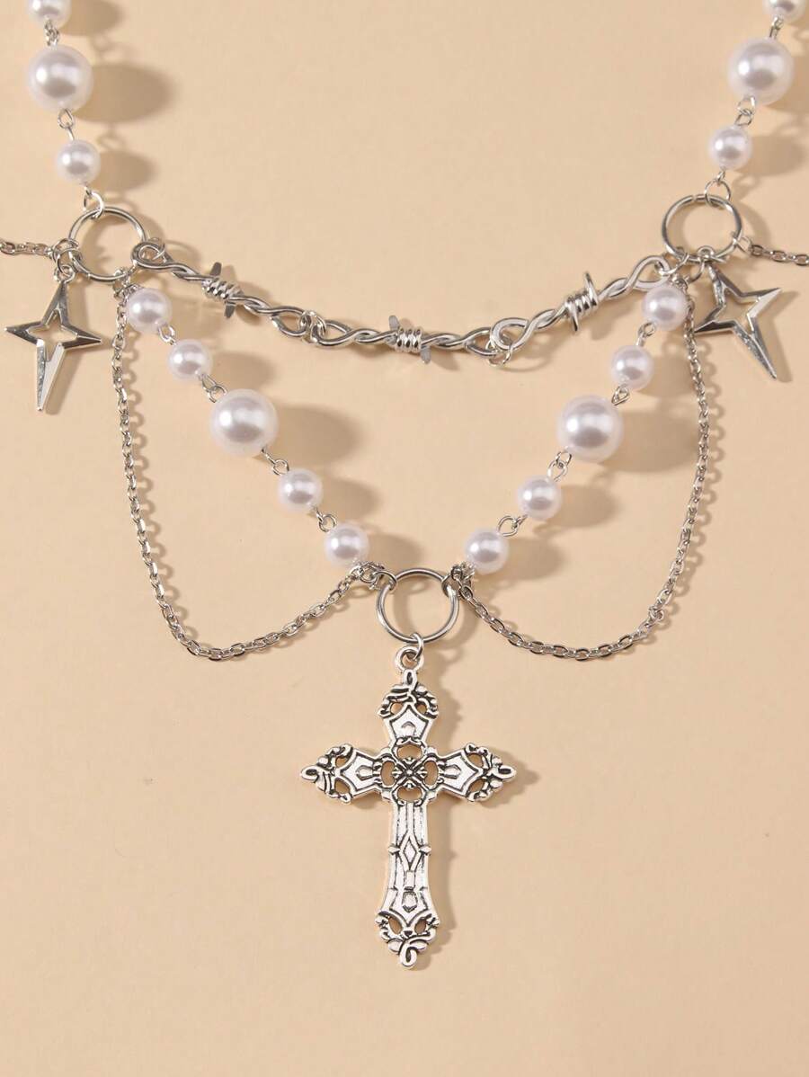 Y2k Gothic Style Cross Pendant Necklace, Halloween