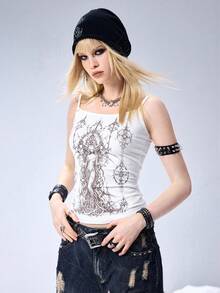 Grunge Punk Y3K Punk Cyborg Graphic Print Slim Fit Camisole For Women