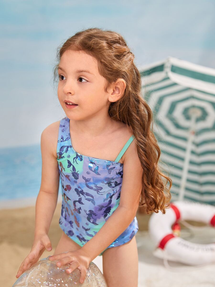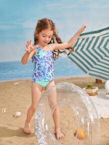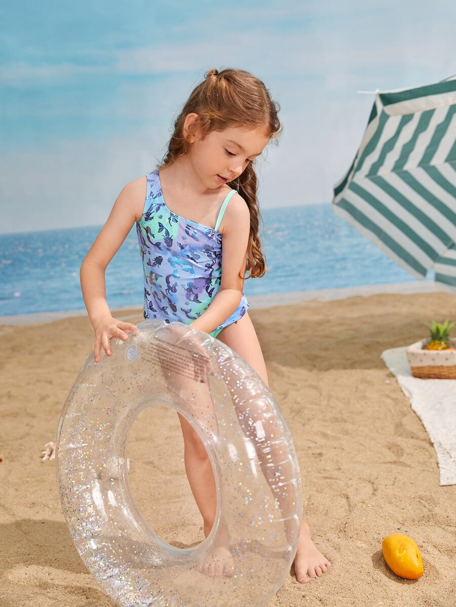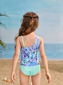 Young Girl Mermaid Print Tankini Summer Beach
